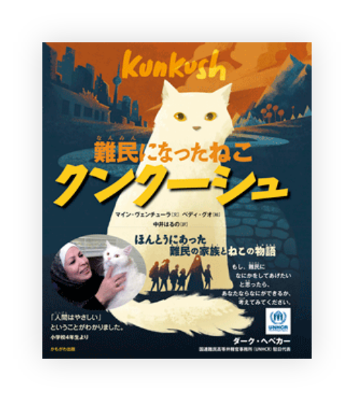 これは本当にあったお話です。表紙の猫は、かわいいですよね。わたしの猫にそっくりです。本を出すにあたり、猫のクンクーシュを助けたボランティアの方たちを取材して翻訳しました。人のやさしさは、必ずつぎのやさしさへとつながる、世界を動かすのだなと思いました。難民には人だけでなく共に暮らしてきたペットも含みます。だれもが安心して暮らせる世の中になればと心から願いながら言葉をつむぎました。ぜひ読んでください。